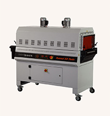 TUNNEL 50 TWIN has been designed to solve the needsto pack small product at high speed with great technical and esthetical results. Double heating chamber, double heating regulation, excellent thermal insulation, high speed belt and high speed shrink, great air flow control makes this shrink tunnel the perfect tool to solve any kind of shrink problem with the maximum efficacy.