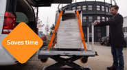 A transport and loading device that offers versatile and flexible applications and appreciably simplifies work. It only takes one person a few simple steps to load xetto® along with the goods into any light work truck – without exertion.