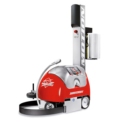 MOTION Automotive wrapping robot to wrap pallets of any dimensions, weight and forms while using stretch film or net film.