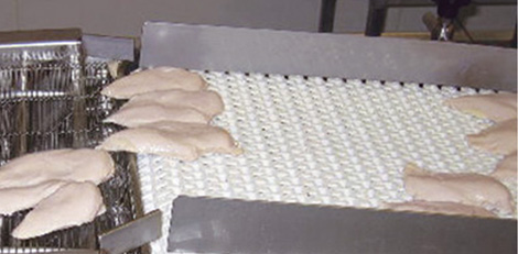 Habasit plastic modular belts are assembled in a bricklay pattern. This feature allows the construction to be of virtually any width and length. Our custom-made belts are available with flights and side guards as an integral part of the belt and are secured with full-width plastic hinge rods.
